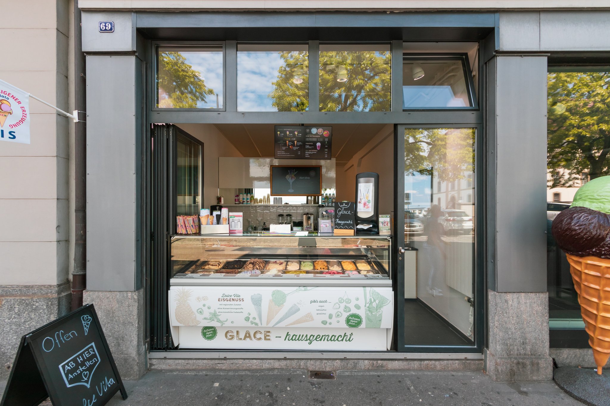 Im Jahre 2019 konnten wir gleich drei neue Dolce Vita Filialen in der Schweiz eröffnen. In der überdachten und mit Sitzgelegenheiten ausgestatteten Fußgängerzone "d´Gass" in Buchs (CH) konnte am 15.5.2019 das erste Dolce Vita Eis genossen werden.